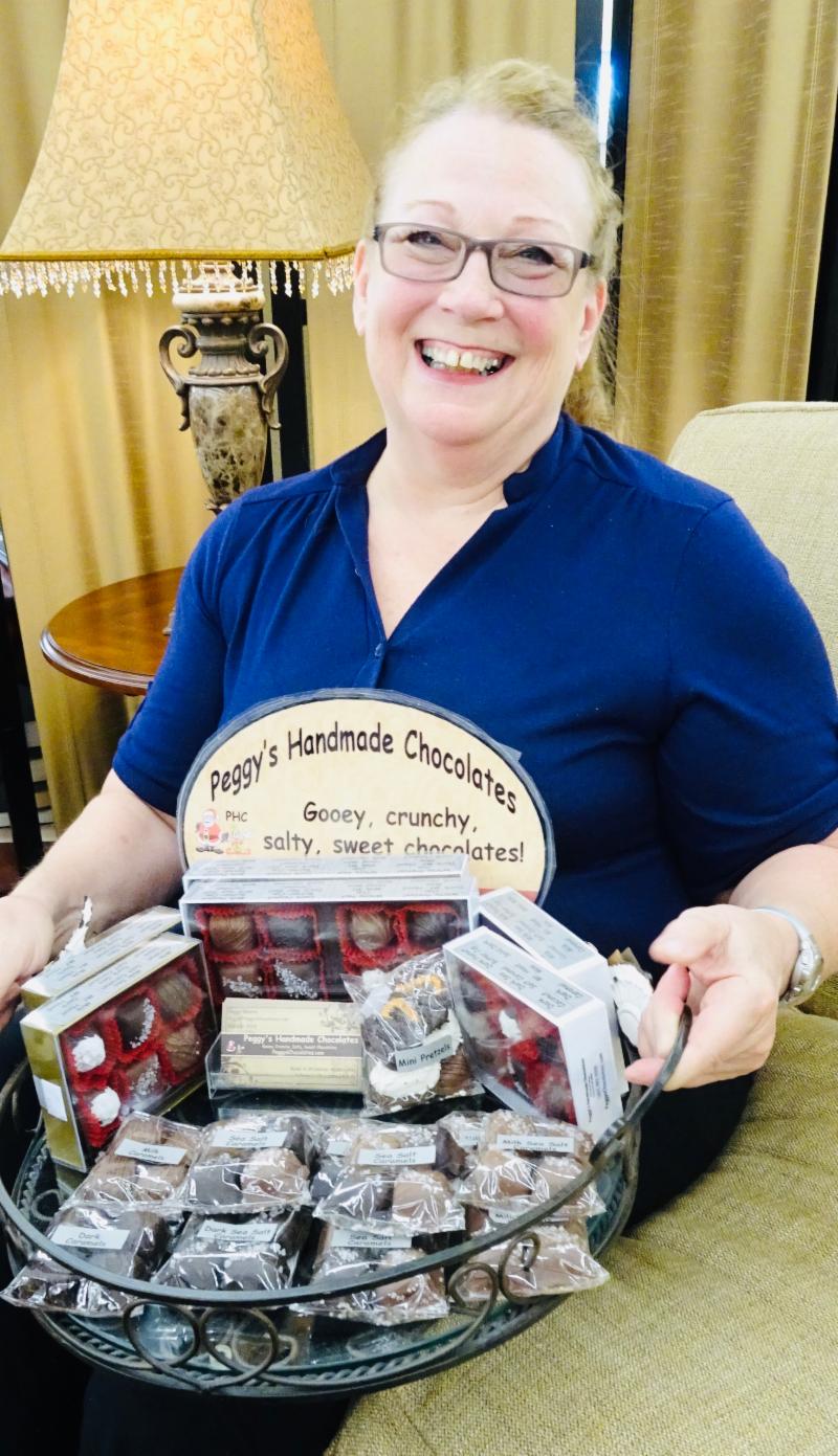 After taking a community education class on dipping chocolates over 30 years ago, I started making and giving chocolates to family, friends, and all of our co-workers each Christmas. This is why my logo is Santa and an elf! Since I never could get the technique for dipping just right, I switched to molds and used a different design for each of the eight flavors I made. When my husband retired in 2005 and then I retired in 2006, I still wanted to make chocolates for family and friends but no longer had all of those co-workers. So, in 2007, I got my food permit, found a commercial kitchen to use, and Peggy's Handmade Chocolates became a business. Many more products have been added since then. Peggy's Chocolate Factory was created in 2009, giving me an easier and closer place to work. My processing facility is in the Orchards area of Vancouver, Washington, USA. "Peggy's Chocolate Factory" is located on my property and is licensed through the Washington State Department of Agriculture. I personally hand make all of the chocolates. |